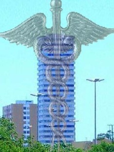 - E o “caduceu” não tem nenhuma relação com a medicina?
