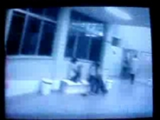 23h25min31seg – Logo atrás do funcionário, o número um dos três homens que percorriam o Hospital utilizando óculos infra-vermelho, elevou sua mão a uma certa altura e deu uma forte coronhada na nuca do funcionário.