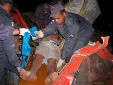 00h41min35seg – Um bombeiro começou a serrar a barra de ferro...
